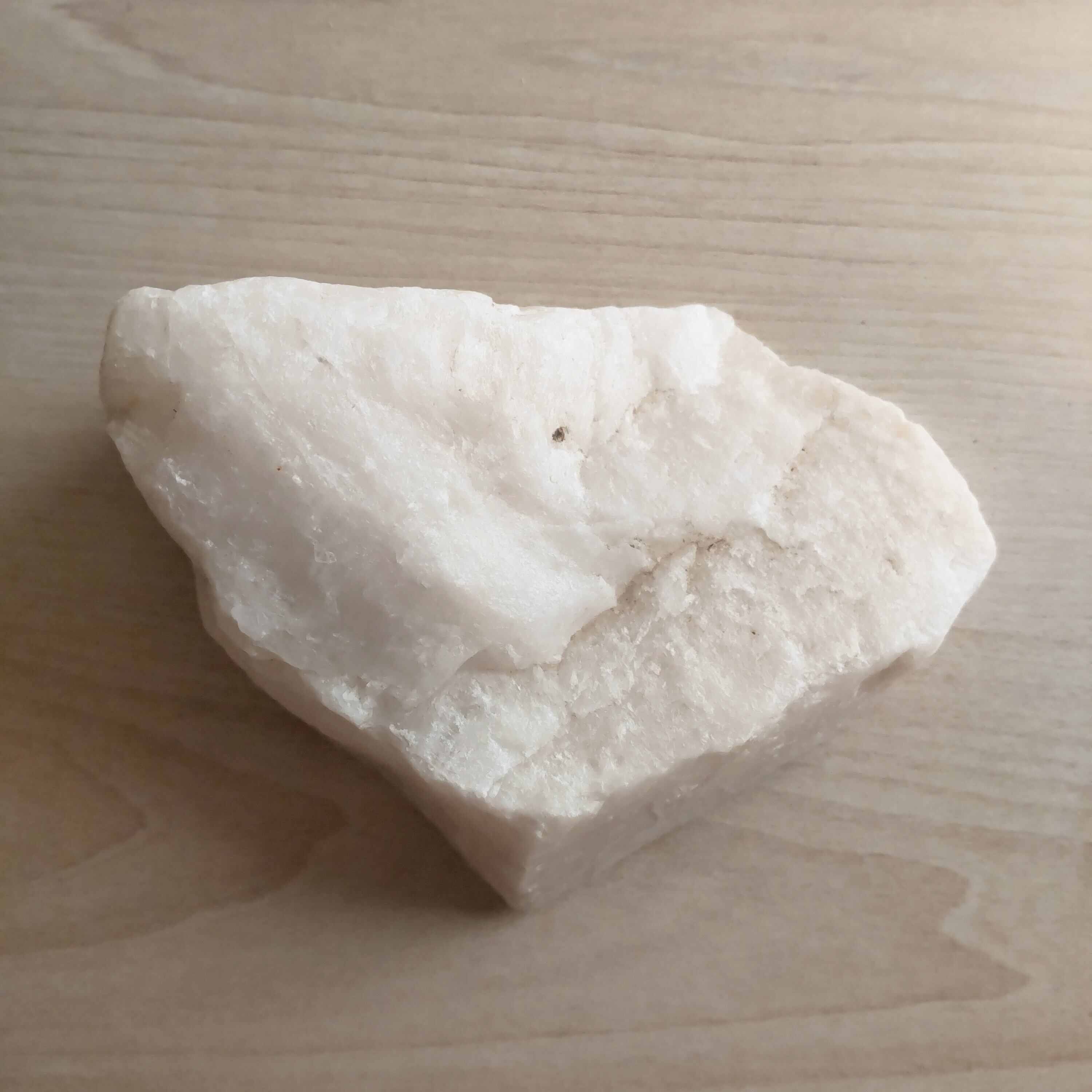 こちらはカナダのマニトバ州産の、ほんのりと黄色みがかった白色の原石のスライスです。